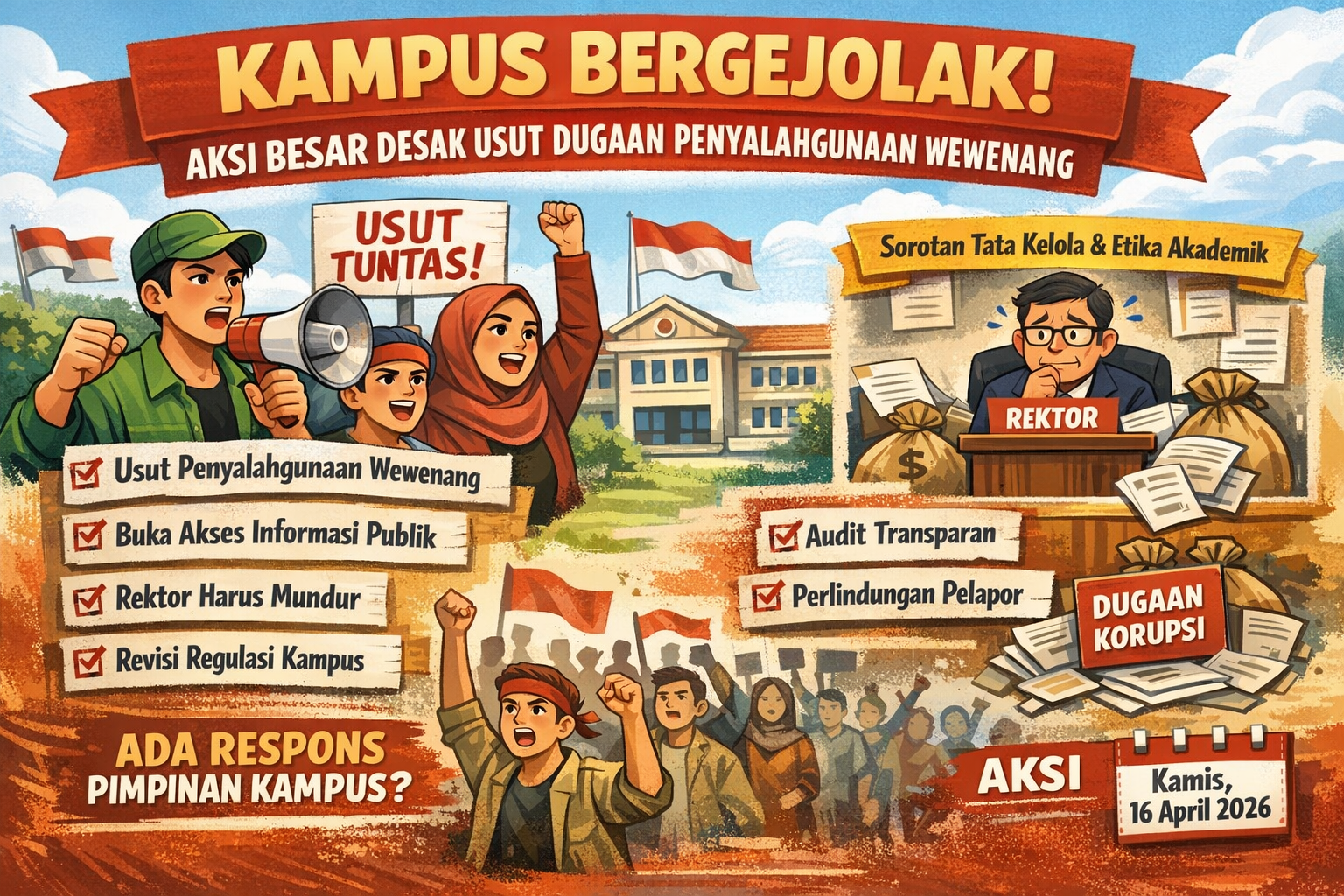 Aksi ini diharapkan menjadi momentum bagi pimpinan kampus untuk memberikan klarifikasi secara terbuka sekaligus membuka ruang dialog dengan berbagai pihak.