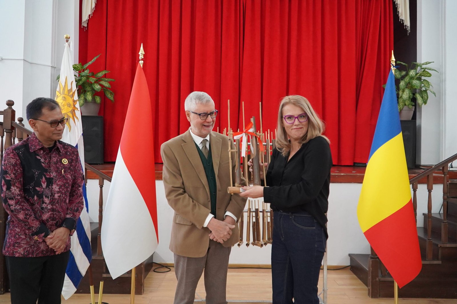 “Angklung, warisan budaya Indonesia yang telah diakui UNESCO, mengajarkan bahwa satu nada saja tidak cukup untuk membentuk melodi yang indah. Harmoni hanya tercipta ketika kita bermain bersama. Nilai kebersamaan itulah yang kami harapkan dapat menjadi jembatan persahabatan antara Indonesia, Uruguay, dan Rumania,” ujarnya.