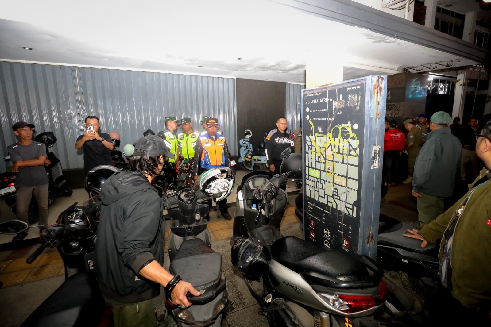 “Kita menemukan satu spot di depan Gedung Merdeka. Ada ratusan motor parkir di atas trotoar. Ini jelas melanggar peraturan,” tegas Wali Kota Bandung Muhammad Farhan di lokasi.