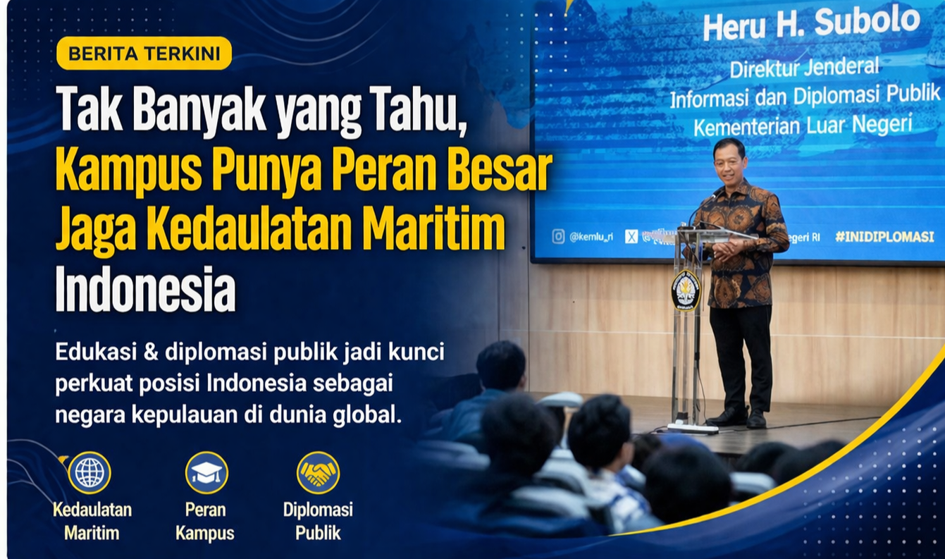 Direktur Jenderal Informasi dan Diplomasi Publik (IDP) Kemlu RI menilai kampus memiliki posisi penting dalam membangun narasi Indonesia di tingkat global. Mahasiswa tidak hanya menjadi penerima informasi, tetapi juga berperan aktif dalam menyebarkan pemahaman mengenai kedaulatan maritim kepada masyarakat luas.